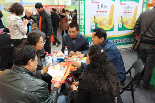 此次展會,我公司的展位面積占地48平方米,是最大的展位之一。公司對此次展會非常重視,積極策劃,精心布展。開幕當天,公司新任董事長郭中校親臨現場指導工作,北方玉米工程中心主任劉文國(吉林省農科院玉米所所長)及6位專家也親臨現場,給客戶和農民朋友答疑解難。市場部經理張亞輝,市場部副經理萬立波及7位區域經理連續3天,積極熱情的接待前來展位參觀走訪的農民朋友和各市縣區鄉經銷商3000余人,發放宣傳資料及彩頁20000余份,收錄信息5000余條。